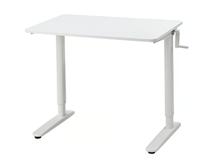 Från IKEA kommer modellen Relatera. Detta är testets mest budgetvänliga alternativ. Istället för motor eller vev använder du handkraft tillsammans med en gasfjäder för att ändra bordets höjd. Skivan är mindre och bordet är utformat för att vara lätt att flytta vid behov. Passar den som sporadiskt arbetar hemifrån och söker den lägsta investeringskostnaden.